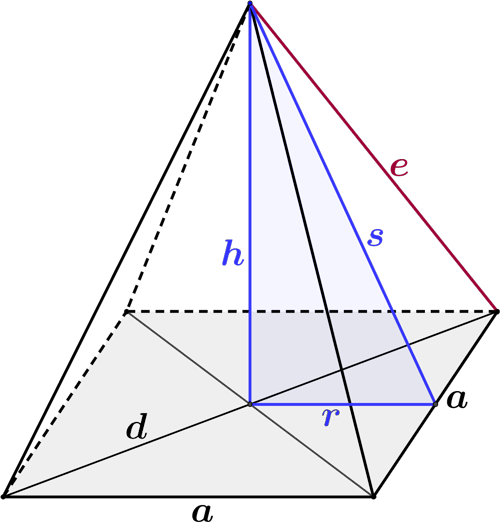 This pyramid calculator computes side, height, apothem, lateral edge, volume and surface area. Also, the calculator writes a step-by-step explanation on how to find the solution.