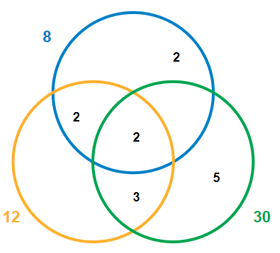 The Venn diagram below illustrates this solution.