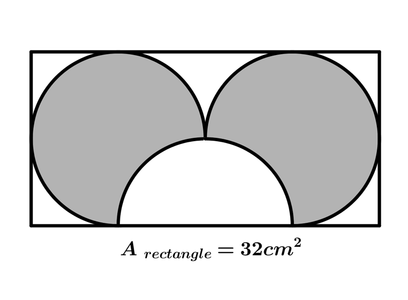 If the area of rectangle shown on the picture is $32 cm^{2}$ then the area of the shaded figure shown on the picture is $A=4\cdot (2+\pi) cm^{2}.$