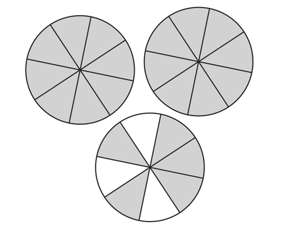Find the mixed number and the improper fraction that corresponds to the picture.