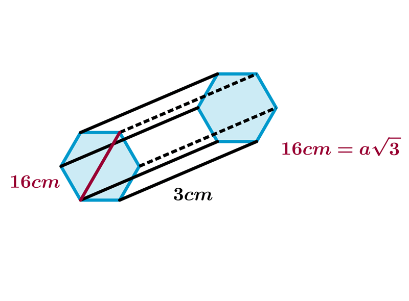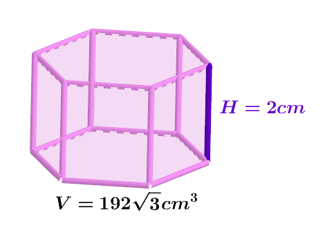 Find the length of the base edge of the hexagonal prism shown on the picture. The volume of that prism is $192\sqrt{3} cm^{3}$.