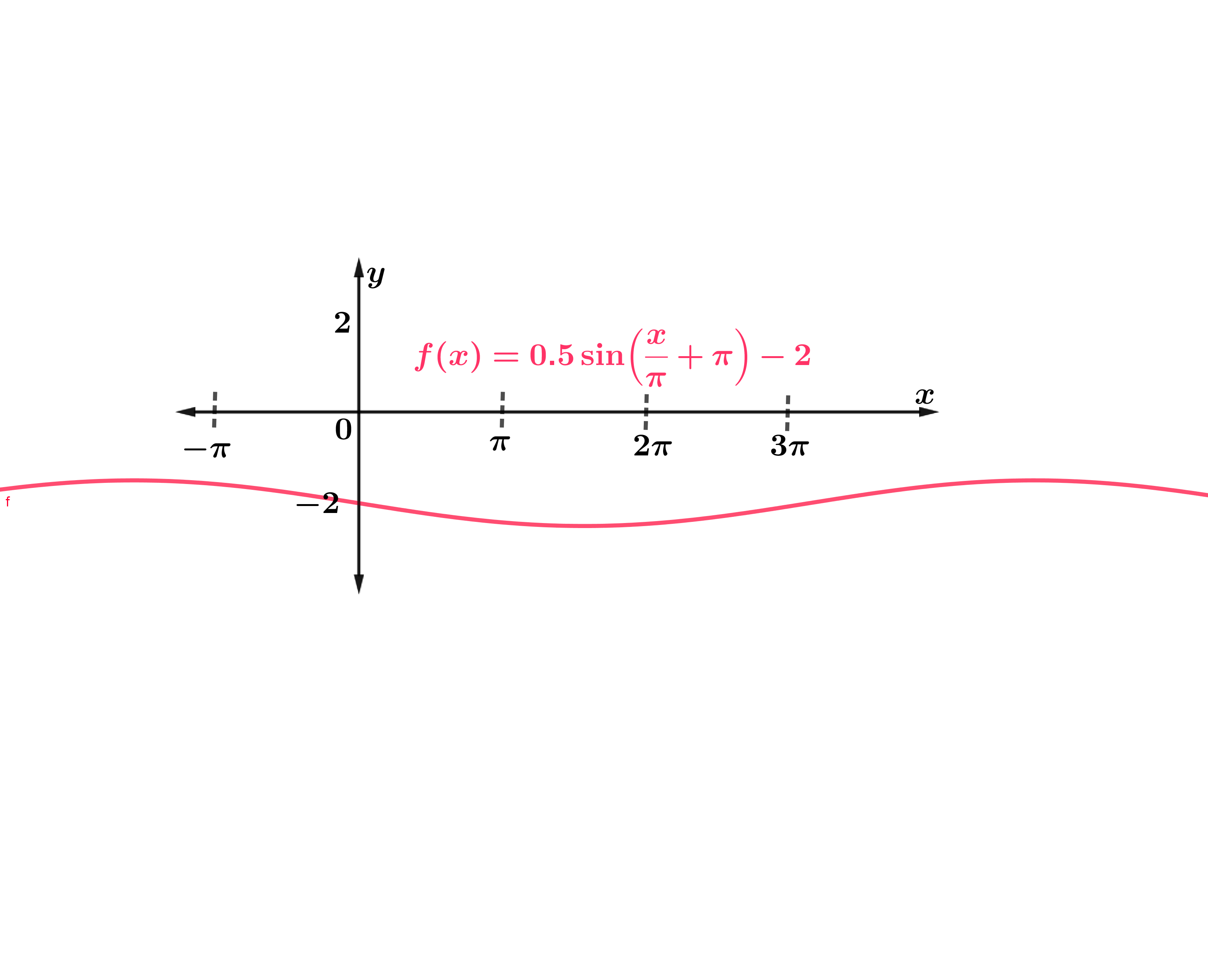 Determine the range of the function $f(x)=0.5\sin \left(\dfrac{x}{\pi}+\pi \right)-2$ shown on the graph.